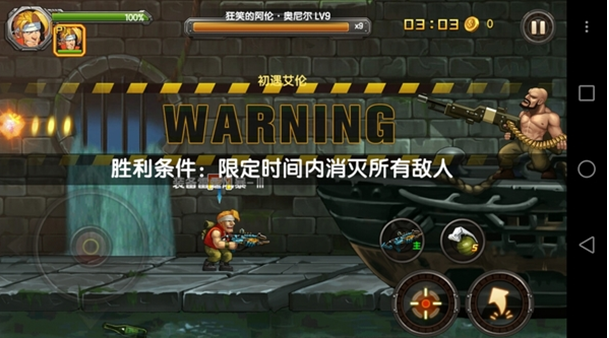 首先是操作方式,自然是摇杆操作,双武器的切换、手雷CD、血量设定等革新并不问题,主要是摇杆操作实在是不怎么精准,而且要占据屏幕很大一块区域,非常影响视野。另外就是,角色的45度斜射感觉挺困难,而射击即使加入连发按起来感觉也很累(倒不如直接设置开火的开关)。