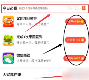 进入头条、赚钱、玩一玩等赚取金币。见下图