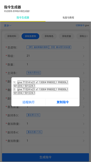 原神指令生成器最新版是一款专门为原神游戏玩家打造的手机游戏快捷指令生成软件。这款软件可以一键生成各种指令,不管是原石、人物、圣遗物都可以生成,每个用户都能够在这里轻松操作,还为用户提供了一键应用多开功能,不仅可以在这里多开游戏,还可以添加其他应用,免费下载。
