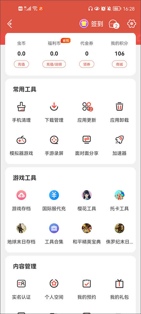 6、点开我的,有手机清理、下载管理、应用更新/卸载、加速器等。
