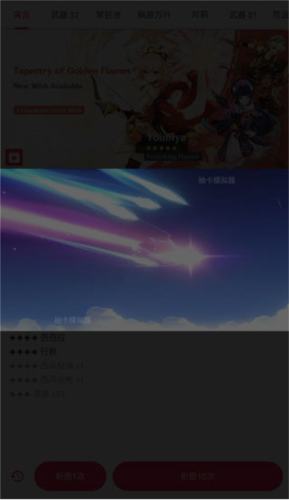 1、在这个游戏中可以模拟各个卡池的十连抽卡,比如常规池以及一些角色的up池(其中还包含了武器),可以足够大家抽个爽了。