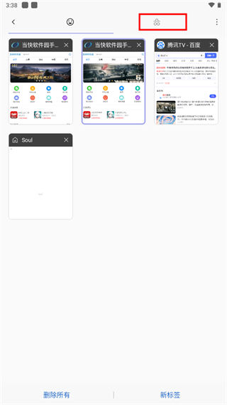 3、想要进入无痕模式,那你可以点击打开标签页面,然后在里面打开【无痕】页面即可,同时你可以管理你的正常页面和无痕页面。