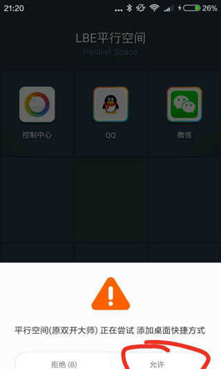 请把平行空间加到系统或安全类产品的白名单中,如果平行空间的进程被杀掉,双开应用的进程也会被杀掉哦。