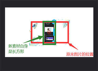 4、原素材,在选择替换“原素材”就是保持现在使用的图片形状大小,只是将内容替换为新的图片。比如上面我使用的是“横着的长方形”,选择“原素材”会出现一个“横着的长方形”框让你调整替换后的内容,框内的画面就是最后替换的画面。