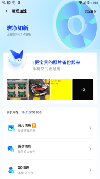 4、清理完成后你还能选择下方的照片清理、微信清理、qq清理等。
