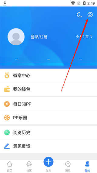1、进入软件,在我的界面点击右上方的设置