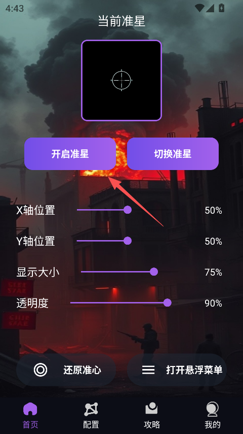 3.根据你的喜好来设置准星,然后点击开启