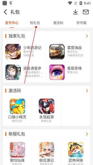 5、在抢礼包界面中找到自己所玩的游戏并点击进入领取。