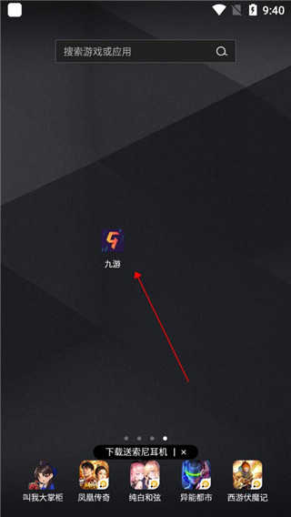 1、找到手机中的九游游戏中心app并点击进入。