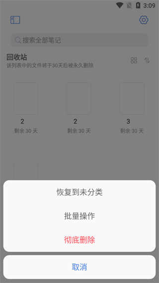 6、点击删除的笔记,用户可以将删除的笔记彻底删除还在恢复到原来位置;