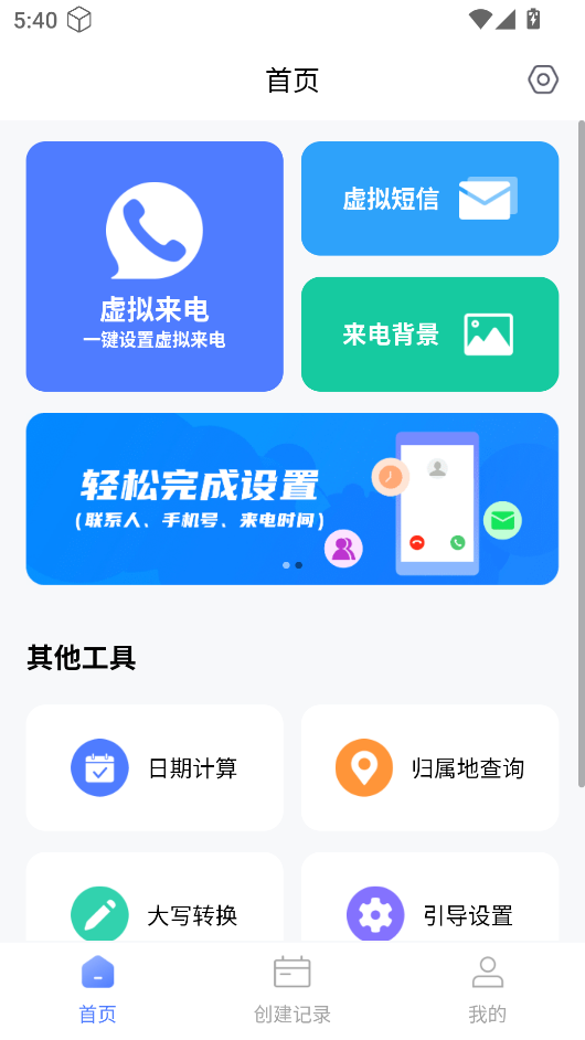3、首页有虚拟来单、虚拟短信、来电背景等功能。
