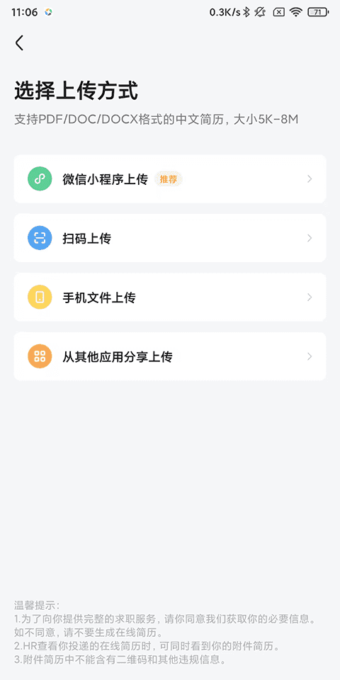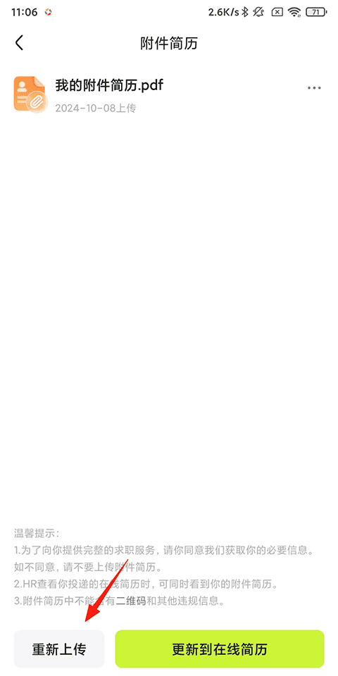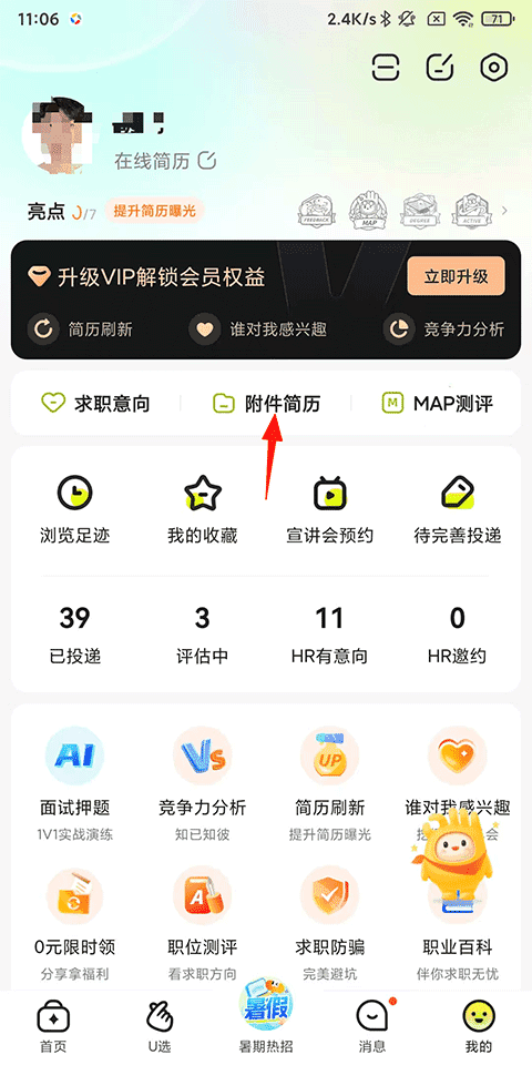 4、上传后进入与HR沟通页面,点击上方的投递即可发送简历附件。