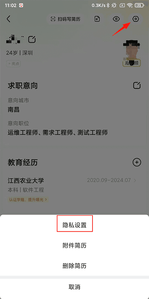 2、进入后点击右上角的设置按钮,选择隐私设置;