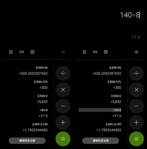 1、竖屏模式下全是大按键,基本还原了实体计算器的键位特点,还支持回看计算记录,完美领先某水果大厂计算器。