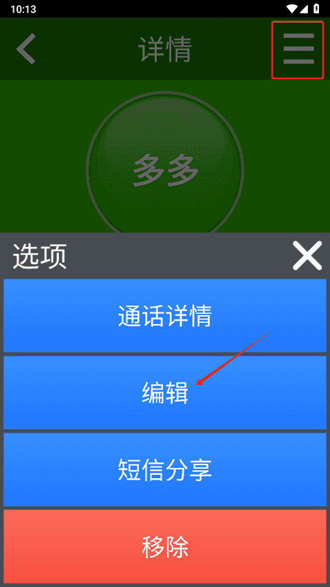 7、进入联系人详情页面后点击右上角三横线,再点击编辑功能