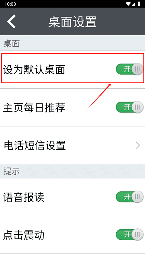 4、语音播报功能同样在桌面设置页面内将语音报读功能开启就可以使用啦