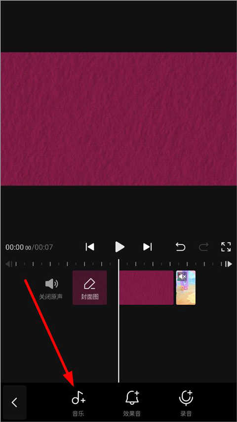 5、添加音乐后,关闭原声,拖动音乐进度条即可给整个视频添加音乐;