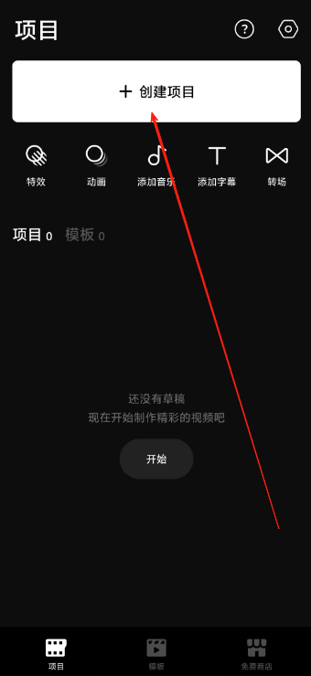 1.用户进入软件之后可以直接在项目页面中直接点击创建项目即可进行下一步操作。
