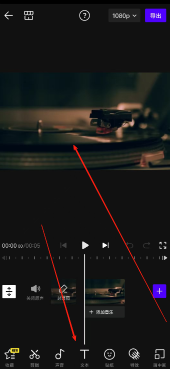 3.最后在剪辑页面中用户还可以对视频声音、文本、贴纸、特效等内容进行设置和剪辑。