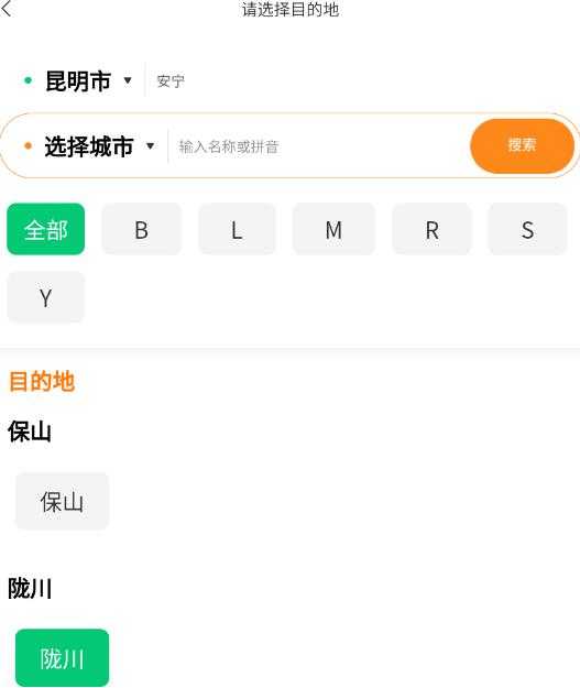 3.接下来就是选择目的地城市,确认好城市并点击即可;