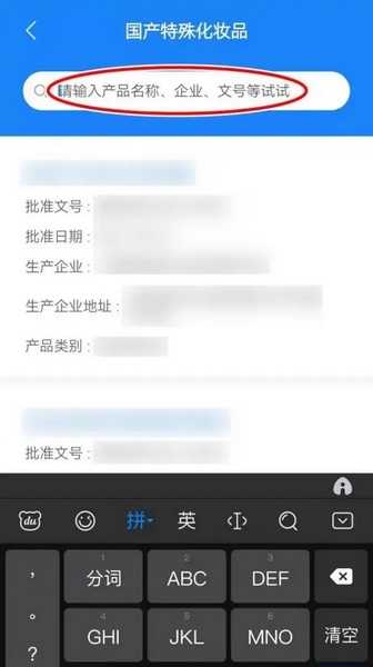 3.进入化妆品搜索页面,输入框输入有关内容进行查询;