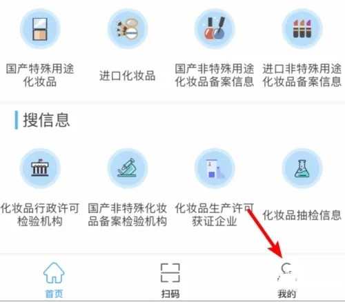 1.打开手机中的化妆品监管应用,进入后点击下方我的选项。