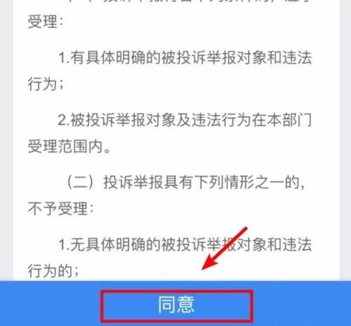 3.进入投诉举报页面,可以看到投诉举报的须知,点击下方同意的选项。