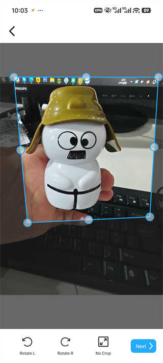 3、扫描成功后,裁剪文档,移动蓝色裁剪边缘以选择您的文档