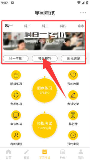 为学员提供科目一和科目四理论学习,各种训练模式,包括顺序练习,随机练习,强化练习和专项练习功能,具有错题收藏功能并与云同步,保证在不同的手机上都能够看到自己做过的题。