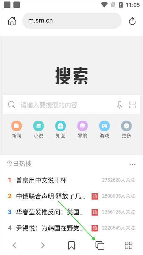 2、进入应用页面后,点击底部扩展图标(下图绿色箭头所指)