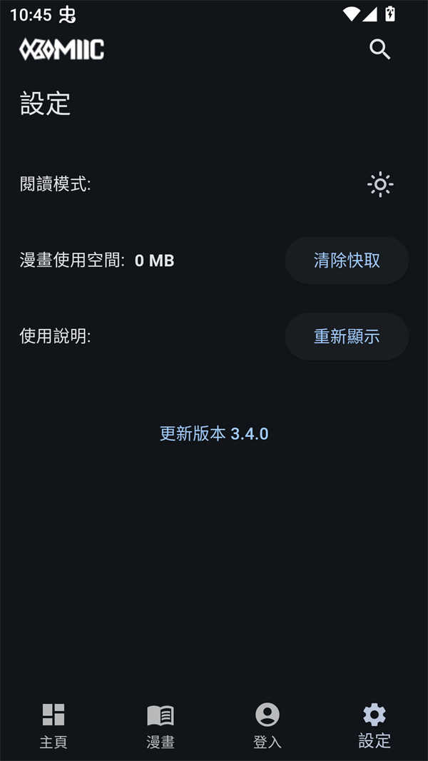 3、最后我们也可以点击右下角“设定”进入到设置页面,从而对阅读模式,漫画使用空间,使用说明等参数进行设置。