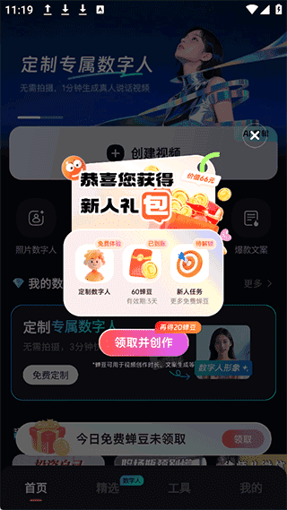 1、打开蝉镜app点击【创建视频】