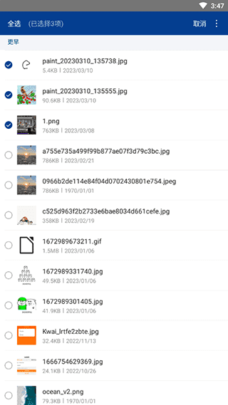 2、长按可以批量选择图片
