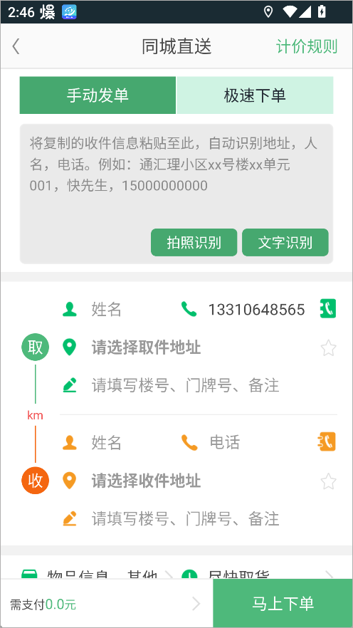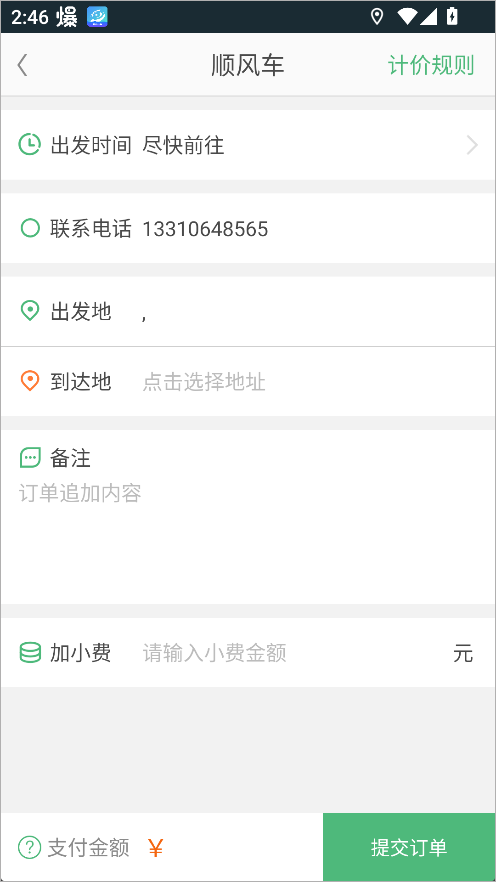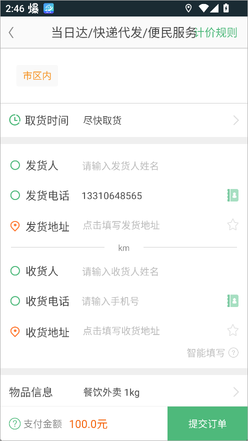 3、实时查看同城快送收费的规则,查看详细的规则信息,方便下单支付费用;