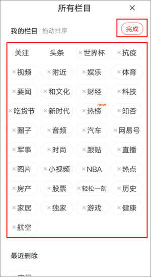 3、之后按自己的阅读喜好来滑动排序以下新闻分类,完成后,点击【完成】即可。