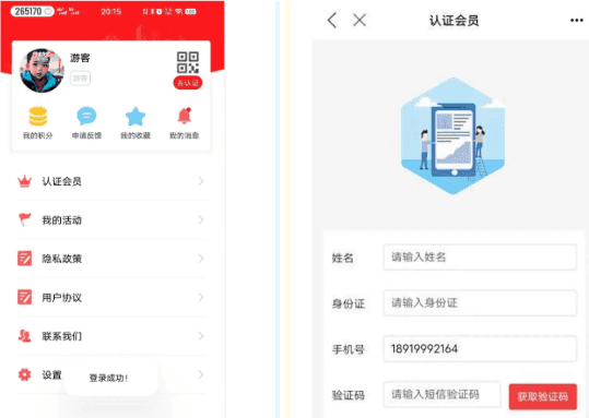 5、未认证会员选择“认证会员”功能,填写个人信息,并且获取手机验证码。
