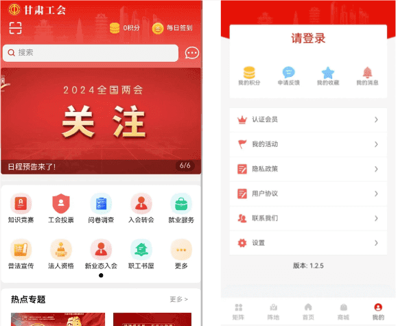 ● 功能模块包含网上入会、法律维权、职工书屋、就业服务、互助保障、心灵驿站、工会地图、婚恋活动、劳模工匠、新闻资讯等主体功能