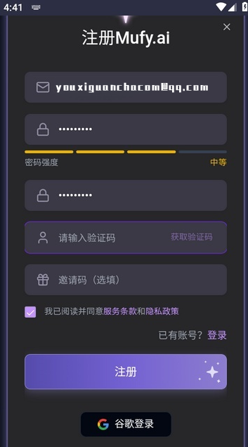1、首先在本站下载安装mufy ai,打开软件,点击下方的【signup】。