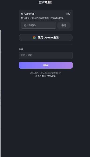 问题描述:Feelin AI 目前支持 Google 账号和邮箱账号登录,若尝试使用其他方式注册,将无法完成。