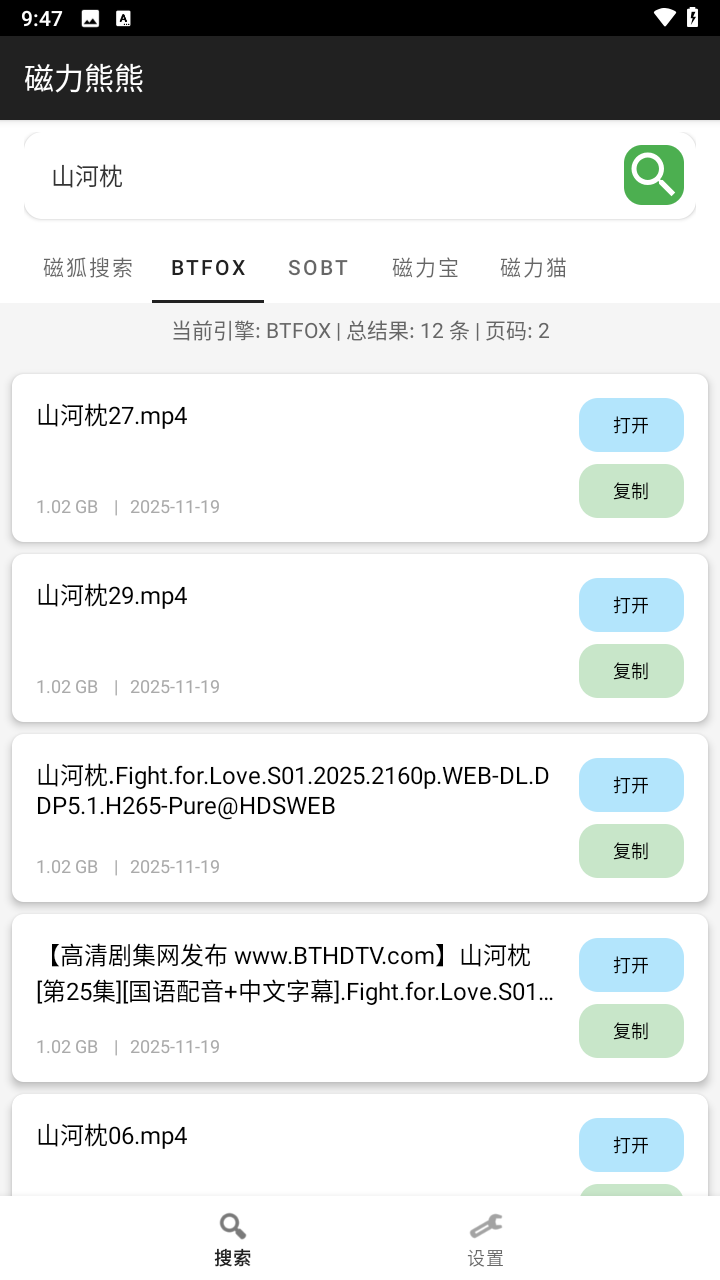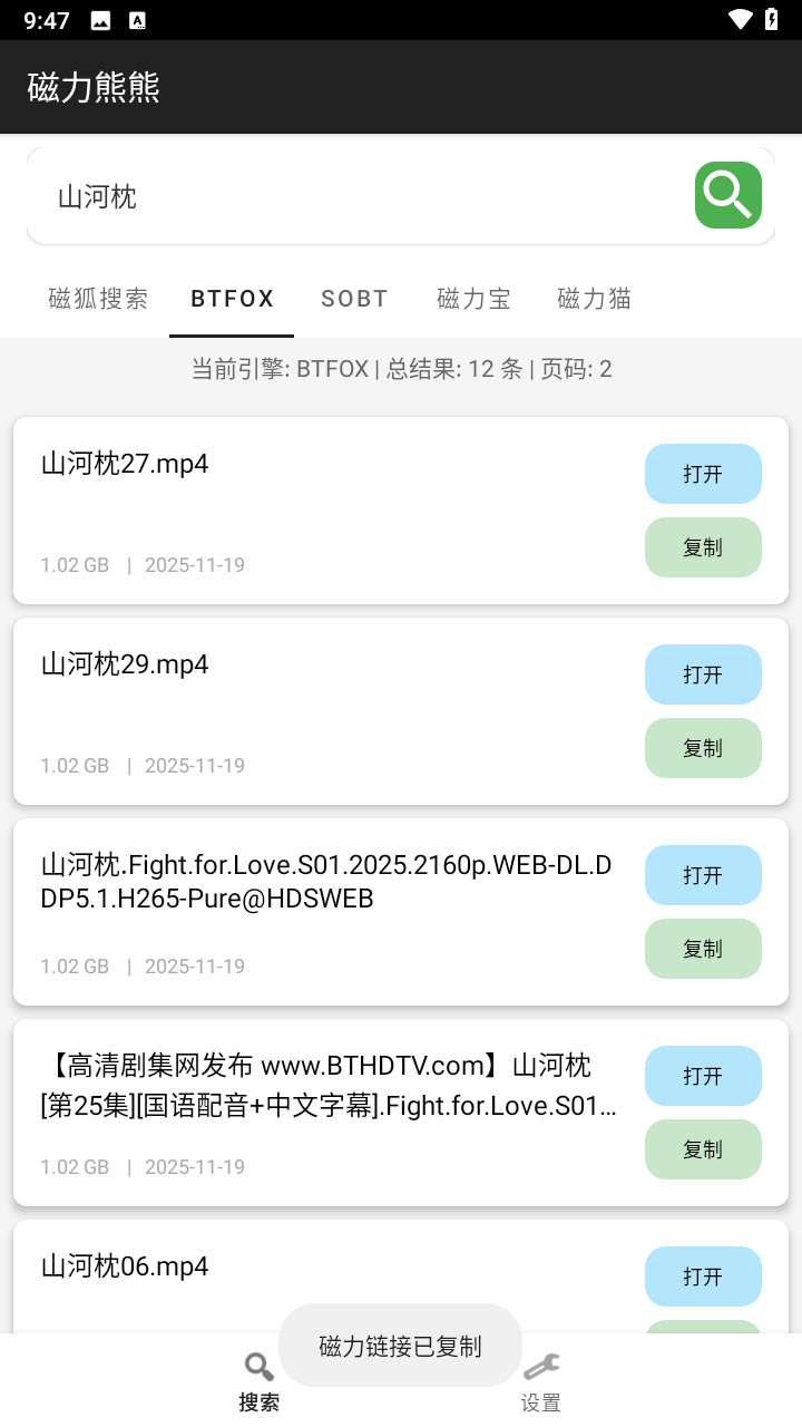 磁力熊熊作为一款磁力链接搜索与管理工具,凭借其丰富的资源、高效的搜索能力和友好的用户界面,赢得了广大用户的喜爱。它不仅满足了用户快速获取网络资源的需求,还提供了多种实用的下载管理功能,让用户能够轻松享受下载的乐趣。磁力熊熊凭借其强大的搜索功能、高效下载体验、全面文件处理能力和简洁易用的界面设计,成为了众多用户首选的资源搜索与下载工具。无论是寻找热门影视资源、学习资料还是其他类型的文件,磁力熊都能为用户提供便捷、高效的解决方案。同时,磁力熊熊还注重用户体验,不断更新优化软件功能,提升用户使用体验。总体而言,磁力熊是一款值得推荐的磁力链接搜索与管理工具。