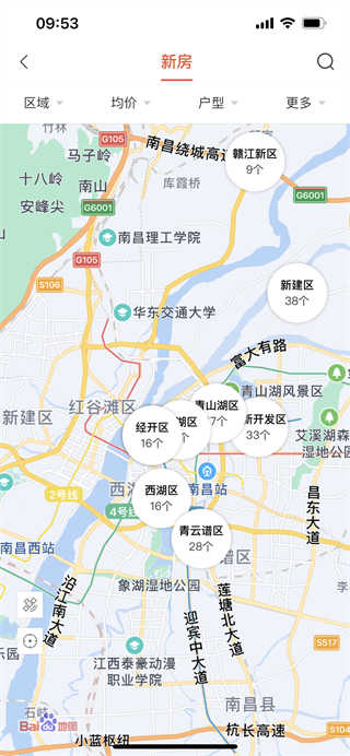 5、地图找房能够查看你周围区域的房区。
