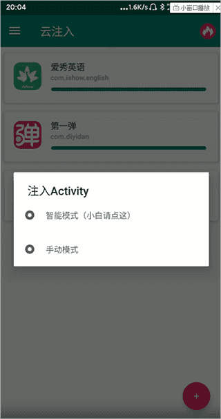2、选择好后点击确定,将会自动从服务器动态下载DEX文件,用户点击下屏幕上的智能模式即可