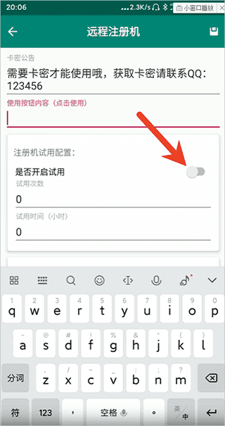 4、安装好后再进入到云注入app的设置界面中打开找到刚才的app,然后打开它的远程注册机设置界面,然后就可以关闭卡密或其它弹窗的开启