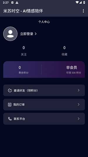 1、打开进入米苏时空,点击我的页面,点击上方的立即登录选项。