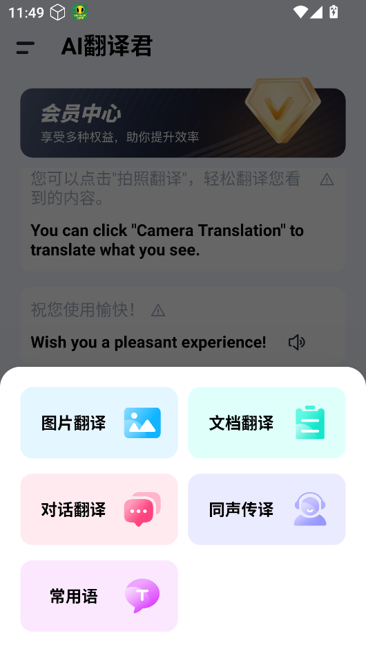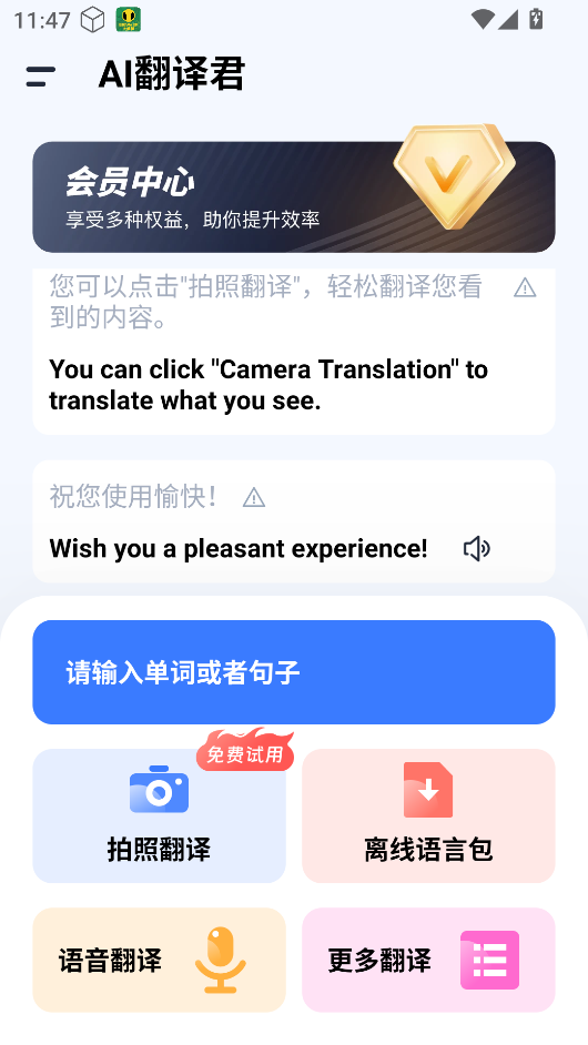 AI翻译君是一款功能强大的智能翻译软件,支持上百种语言翻译,采用先进的人工智能技术和图文图像扫描识别技术。集拍照翻译、语音翻译、文档翻译、对话翻译等多种功能于一体,帮助用户轻松与世界交流。支持多种格式的文档,翻译过程快速且结果准确,还能实现同声传译。翻译历史自动云同步,换机可秒恢复。支持一键朗读、复制、分享,还能调节语速,也支持手动输入文本或局部截图翻译。
