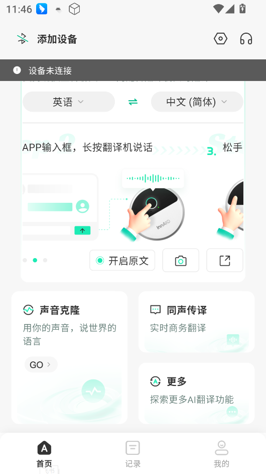 2、具备同声传译功能,能实时翻译对话内容,打破语言沟通障碍。