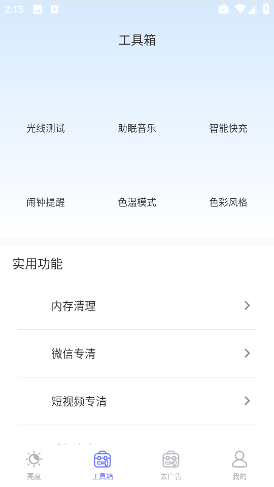 4、接着点击下方的“工具箱”,还支持光线测试,闹钟提醒等功能。