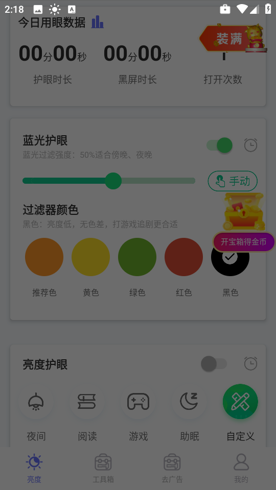 手机亮度调节器是—款能够精准调节手机亮度的轻量级实用工具,拥有4种智能模式,针对不同的环境有多种滤光护眼可自由选择,只需轻轻一点,即可快速切换,适用于多种场景,无论你是看书、看电影追剧,还是玩游戏,都可以选择适合你的亮度模式,还可以设定用眼提醒,定时提醒眼睛休息,缓解疲劳。还可以自定义调整过滤器的颜色,使用过程中没有任何广告弹窗。适用场景广泛,一定程度上可以提高使用效率,内置超多实用工具,所有的功能都是可以免费使用的。
