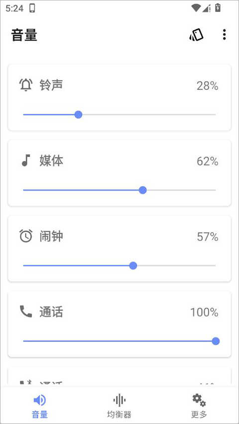 2、在主界面上,选择需要调整的音量类型,如铃声、媒体等。
