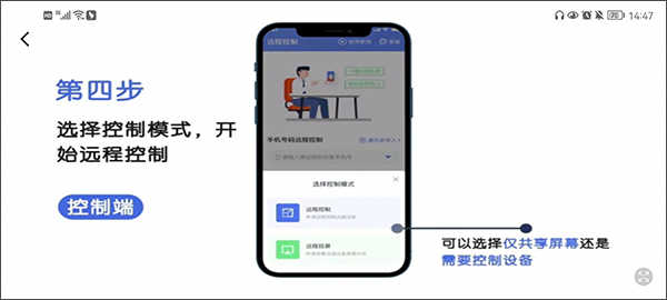 3. 对方需先设置为「被控模式」,包括远程投屏、控制与语音通话权限配置。